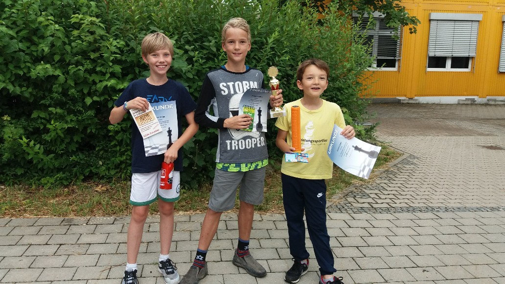 Mit dem Schwung vom Kirchseeon-Open eine Woche vorher konnten beim 11. Vaterstettener Jugendpokalturnier am Sonntag, den 7.7. gleich zwei unserer Jungs in ihrer Altersklasse den Siegerpokal erobern: In der U12 gewann Emil Kasims mit 4,5 von 5 Punkten und beschenkte sich damit an seinem Geburtstag selbst, so dass der Spielleiter bei der Siegerehrung auch noch spontan ein „Happy Birthday“ von allen Teilnehmenden anstimmen ließ. Seine Schwester Sara Kasima belegte in der gleichen Gruppe Platz 11.