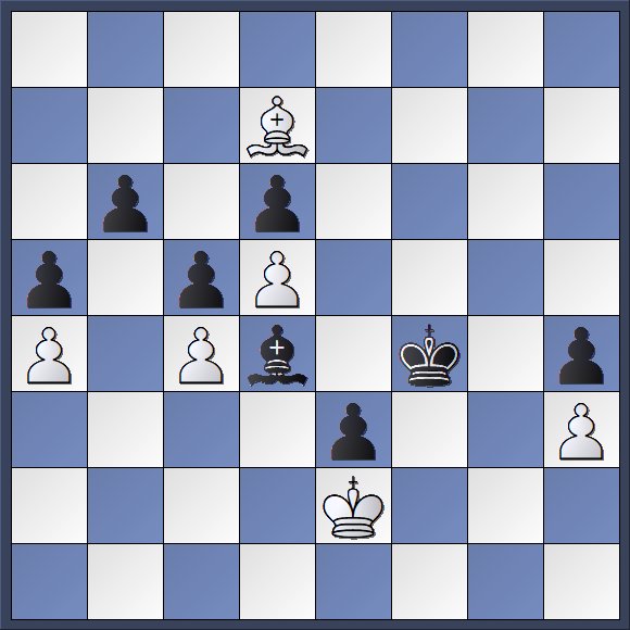 Das Zauberwort lautet hier: Ungleichfarbige Läufer! Weiß hat alle seine Bauern auf weiße Felder gestellt, wo der auf dem Brett verbliebene schwarze Läufer sie nicht angreifen kann, weil dieser nur auf schwarze Feldern ziehen kann. Schwarz hat keine anderen Figuren mehr, nur noch Bauern und den König, welcher lediglich einzelne weiße Bauern angreifen kann, die aber alle in Reichweite des weißen (und weißfeldrigen!) Läufers sind und somit immer rechtzeitig gedeckt werden können. Zudem blockiert der weiße König den schwarzen Freibauern auf der e-Linie auf dem weißen Feld e2, wo er von Schwarz nicht verdrängt werden kann. Schwarz kann mit König und Läufer daher keinen Bauernvormarsch erzwingen. Die einzige Möglichkeit wäre, mit b6-b5 die Bauernblockade auf der a- oder c-Linie aufzulösen, doch dann schlägt Weiß den b-Bauern mit a4xb5 und gelangt einen Zug früher zur Bauernumwandlung als Schwarz, und erreicht dadurch mindestens Remis durch Dauerschach, oder gewinnt sogar noch. Das wollte Schwarz nicht riskieren und willigte trotz der zwei Mehrbauern ins Remis ein.