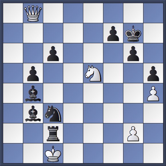 Denn wenn Weiß statt dessen mit 18. Lc4xe6 den schwarzen Läufer auf e6 schlägt, folgt zwingend ein ersticktes Matt nach dem bekannten Abzugs-Doppelschachmechanismus, was wir hier ja anderer Stelle bereits vorgestellt haben: 18. … Db6–b5+ 19. Kf1–g1 Sc3–e2+ 20. Kg1–f1 Se2–g3+ 21. Kf1–g1 Db5–f1+ 22. Td1xf1 Sg3–e2 matt.