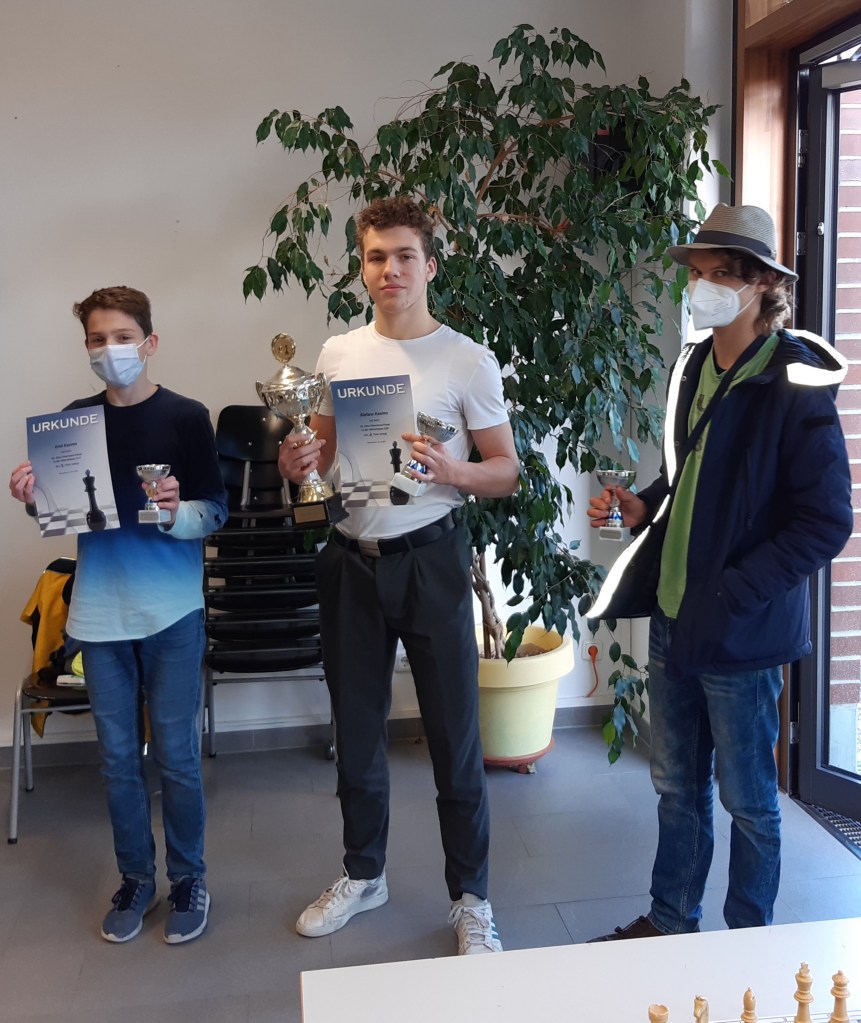 Paul Menzner auf Platz 2 und Emil Kasims auf Platz 3 machten den Erfolg für Kirchseeon in der U20 perfekt, über den sich dank der Doppelmigliedschaften von Stefans (SC Kirchseeon und SU Ebersberg-Grafing) und Paul (Vaterstetten und Kirchseeon) auch die Ebersberger und Vaterstettener Schachvereine freuen können.
