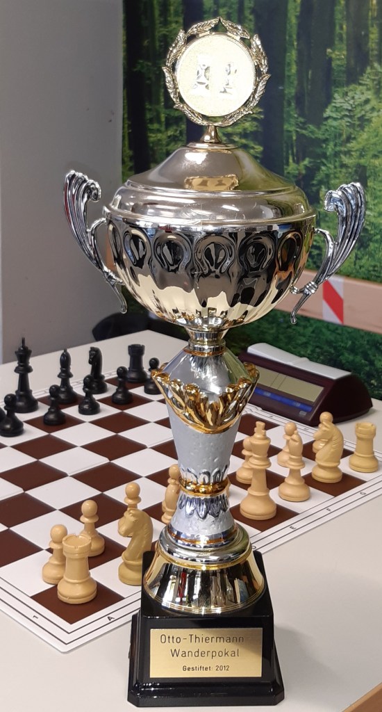 Klar, dass da unser Emil Kasims nicht fehlen durfte – er ging in der U14 auf Trophäenjagd. Weil aber außer ihm nur noch Stefan Langer in dieser Alterklasse gemeldet war, mussten sich beide im U20-Turnier mit den „großen Fischen“ messen. Das waren allerdings im Wesentlichen Familienangehörige und Kirchseeoner Vereinskollegen: Stefans Kasims und Paul Menzner gingen hier als Favoriten ins Rennen und machten den Turniersieg unter sich aus – allerdings mit Hilfe eines bisher unbekannten“dritten Manns“: Nachdem Stefans und Paul sich in einer spannenden Partie Remis getrennt hatten, war es der noch vereinslose, aber gut mitspielende Julian Schleicher, der gegen Paul ein Unentschieden erkämpfte. Somit wurde Stefans Kasims zum alleinigen Sieger und durfte erstmals den begehrten Otto-Thiermann-Wanderpokal für den besten Jugendlichen im Landkreis Ebersberg mit nach Hause nehmen.